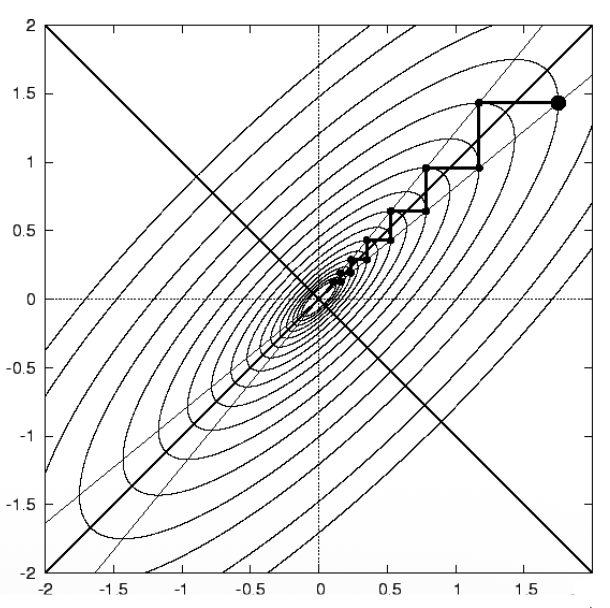 - 接近最小值时收敛很慢