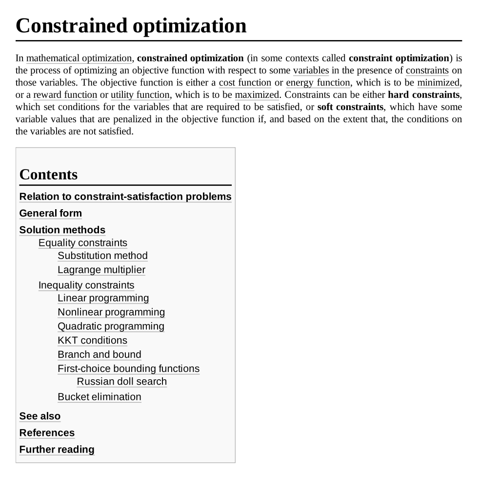 约束优化(constrained optimization):目标 (objective) + 约束 (constraints)