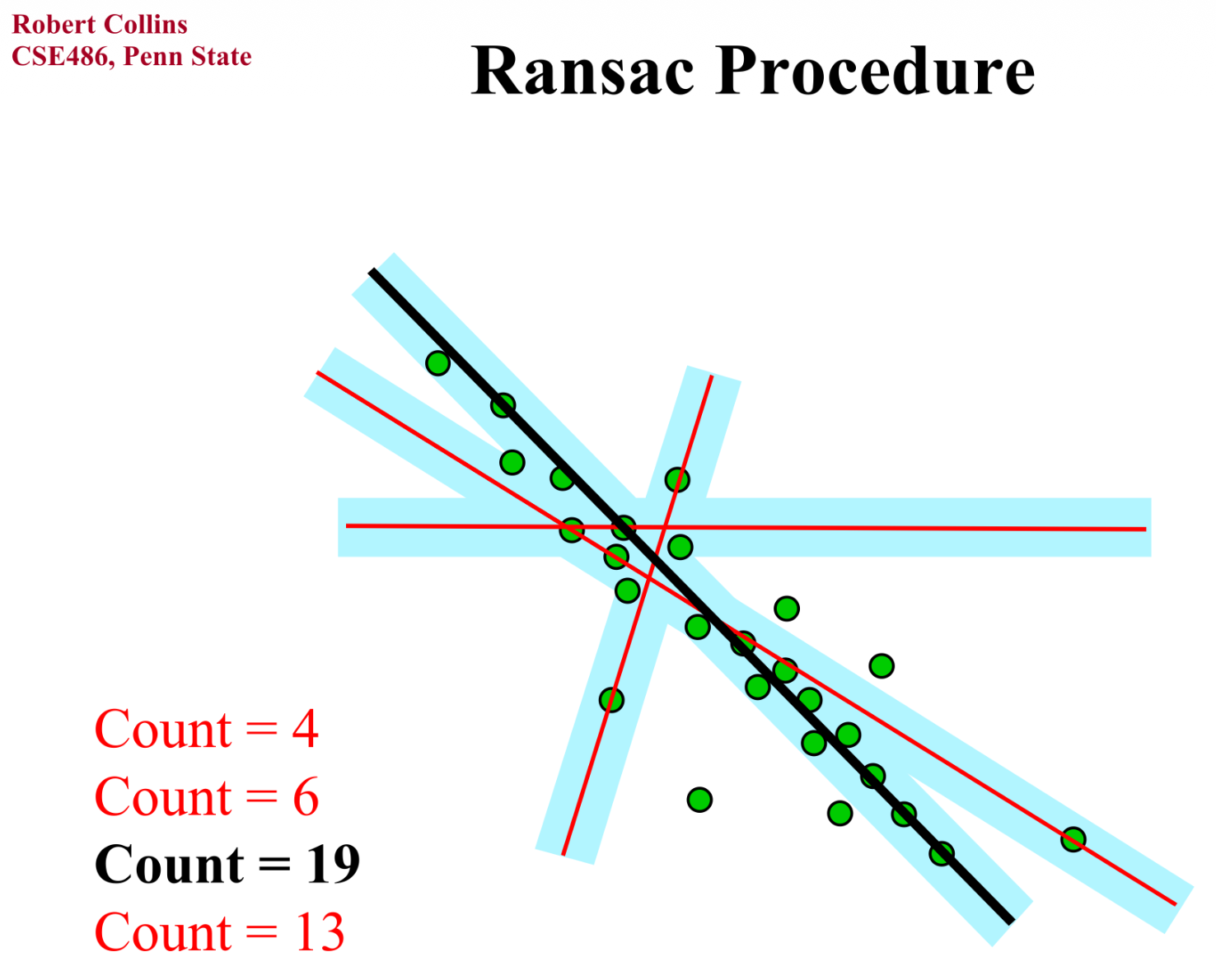 其中,最强大的处理异常点的方法是 RANSAC(随机抽样一致 (random sample concensus)