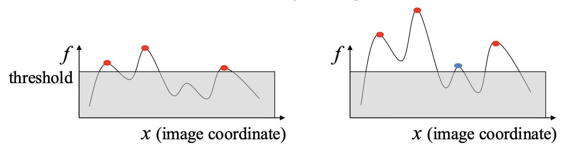 - 寻找响应函数的局部极大值(非极大值抑制 (nonmaximum suppression))