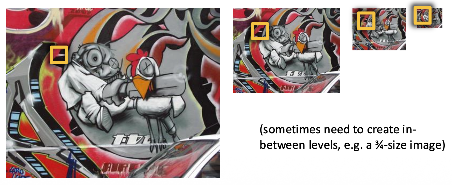 我们可以采用固定窗口大小,并结合图像金字塔的方法来实现,而不是用越来越大的窗口计算 \(f\)。