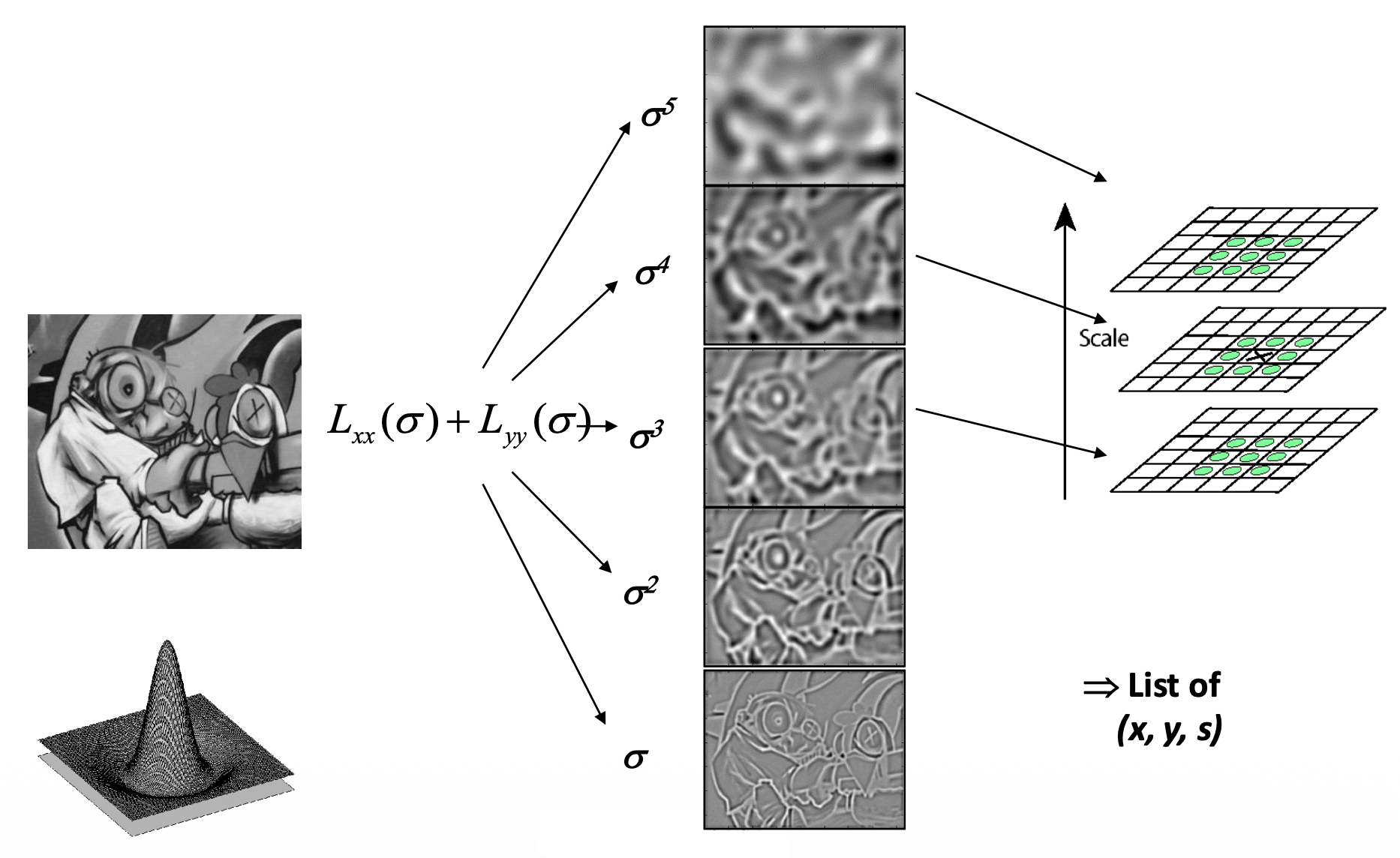 - LoG 的比例受高斯函数的 \(\sigma\) 控制
