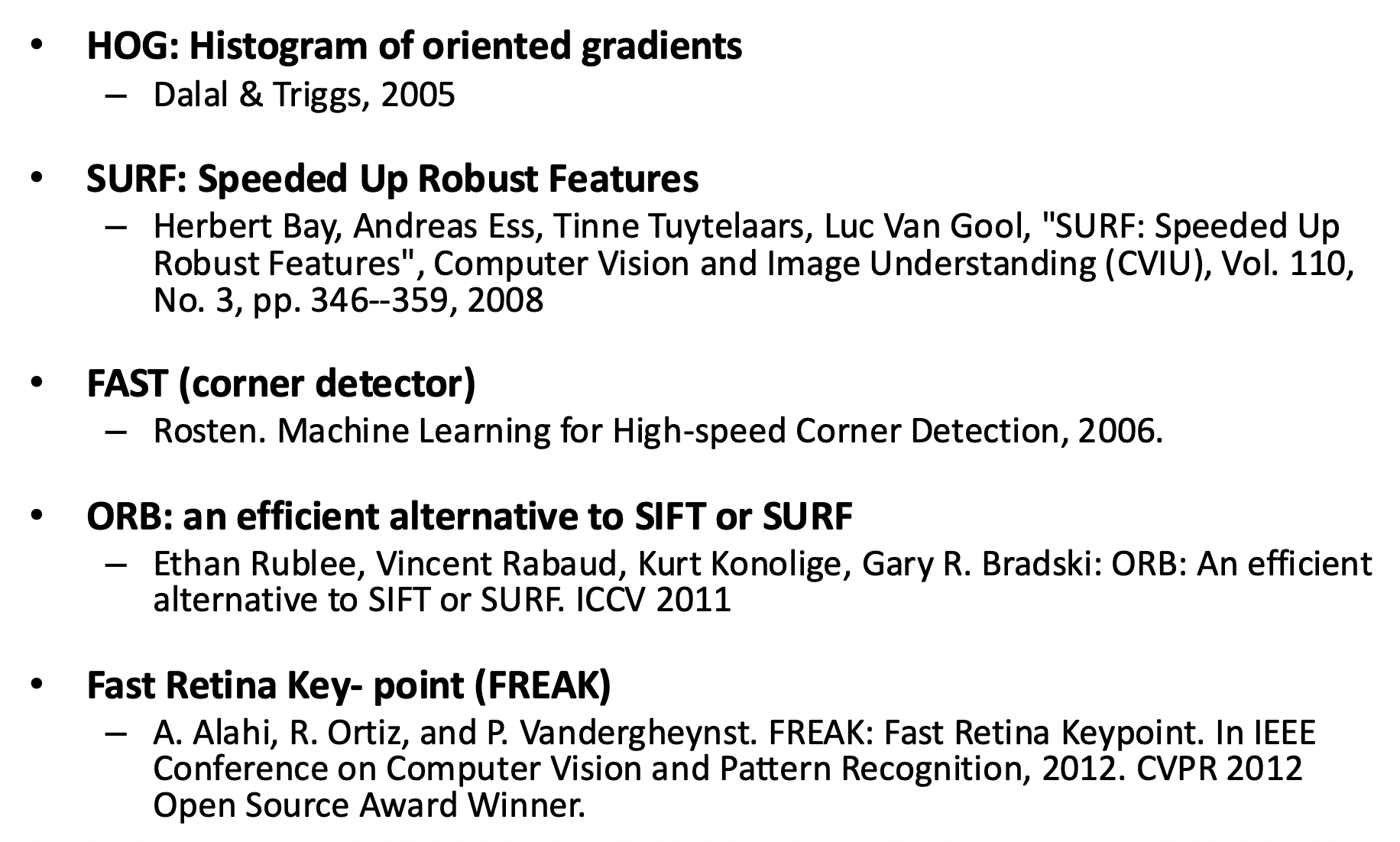 - 检测(detection):识别图像上的兴趣点(interest point)/ 特征点