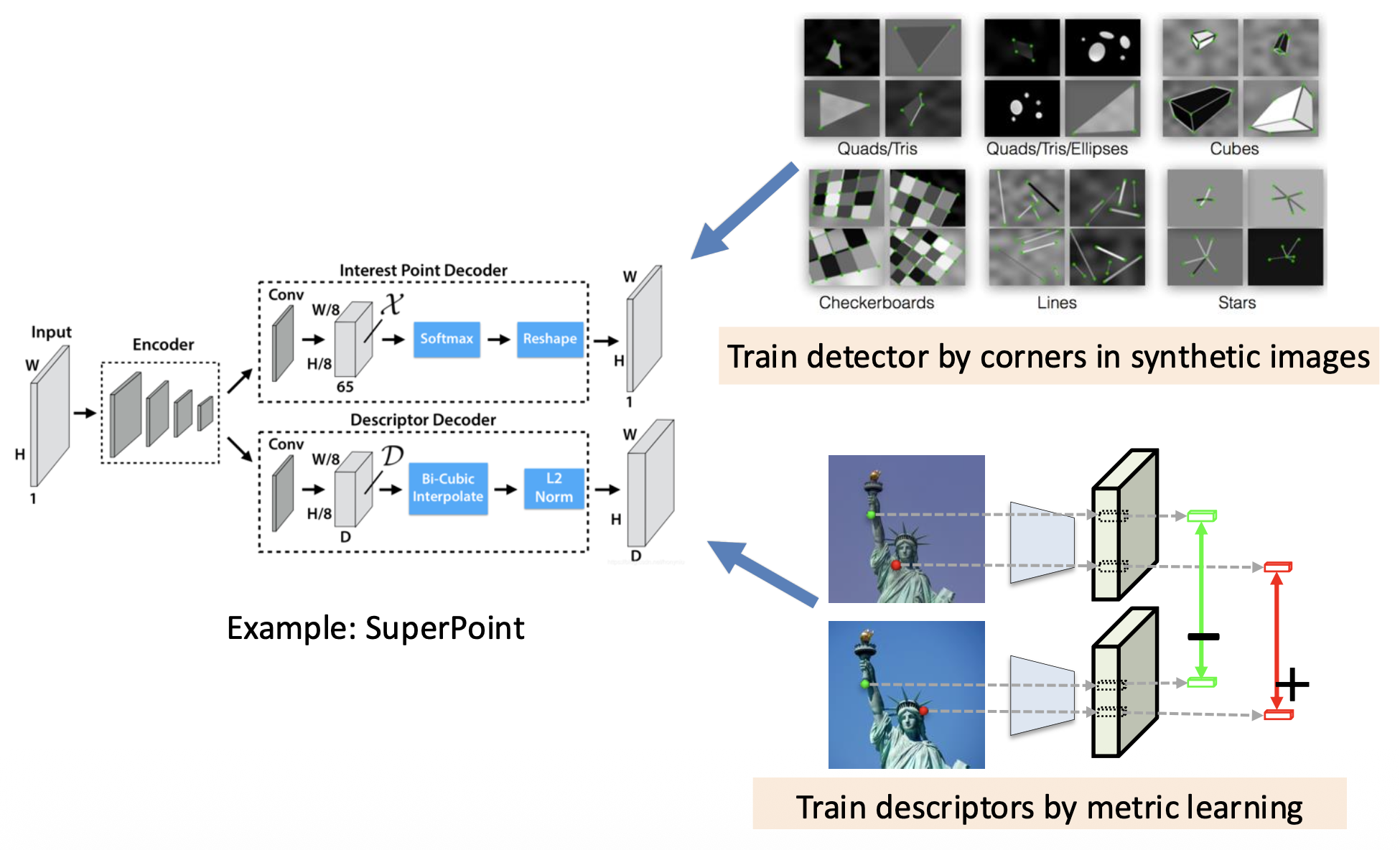 相近内容的图像块 (patch) 应具有相近的描述符 (descriptor)。