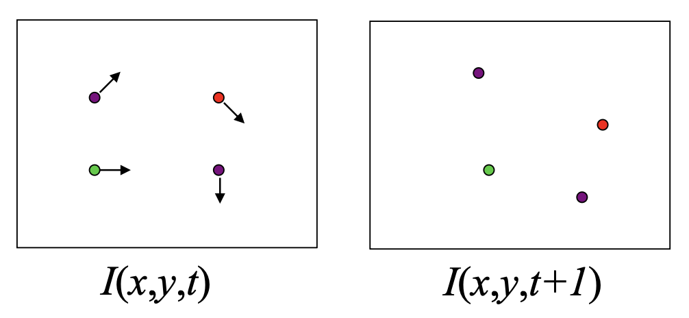 亮度持续性(brightness constancy):相同点在每一帧上看起来应当是相同的
