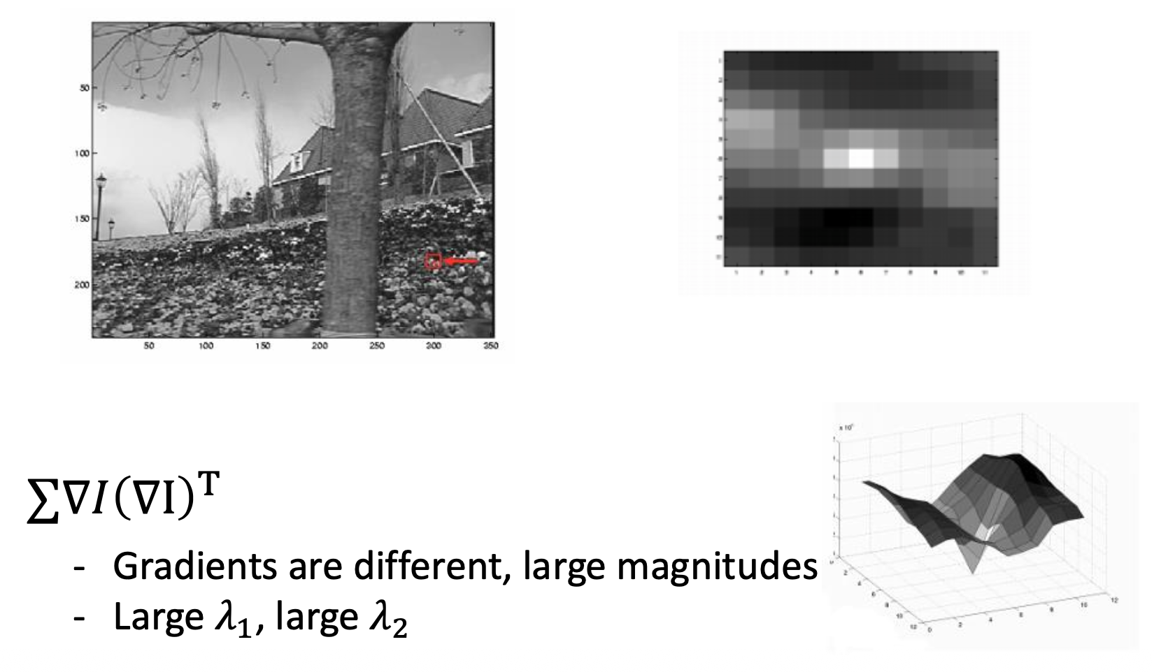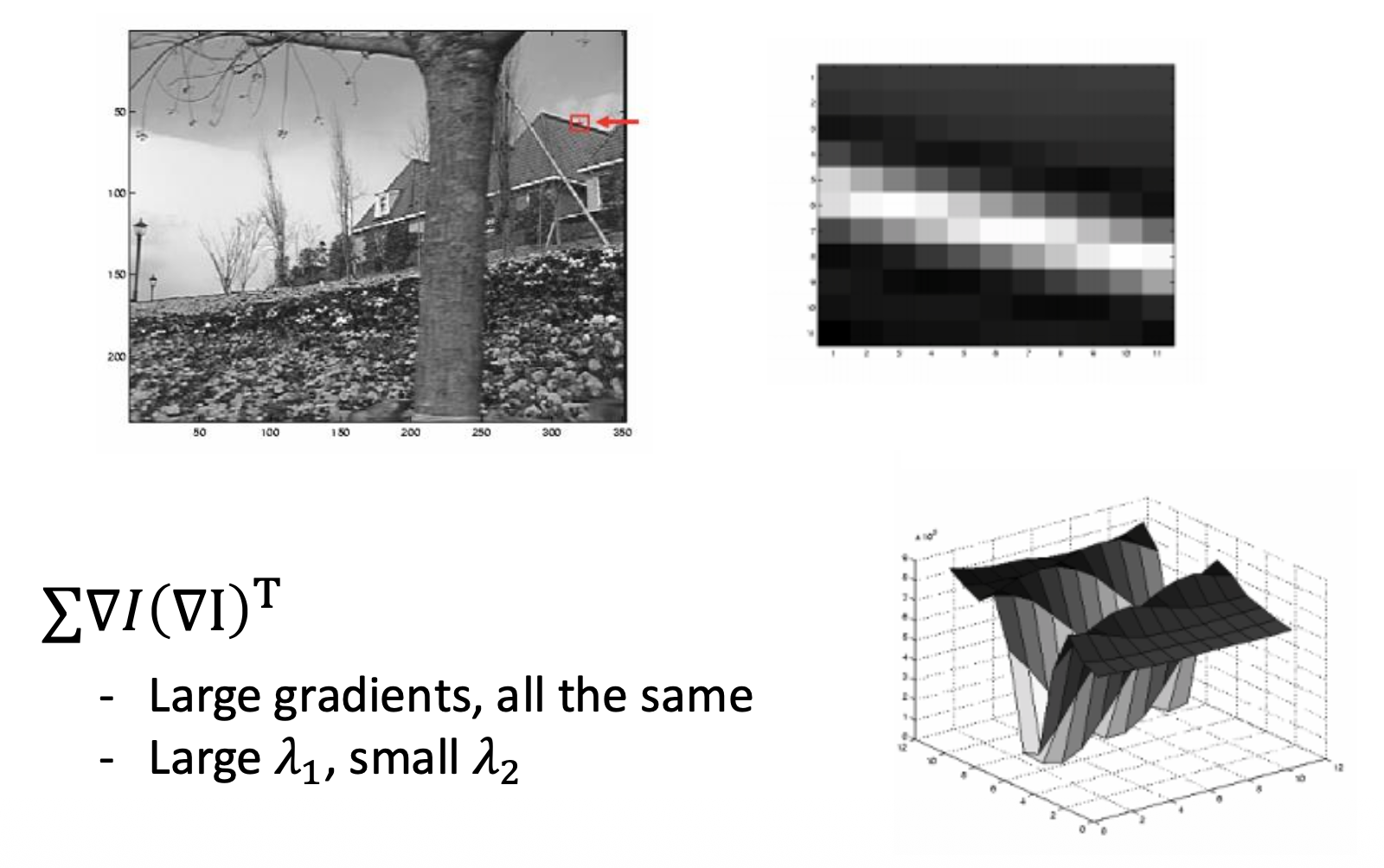 - 计算每个像素周围高斯窗口内的协方差矩阵 \(H\)
