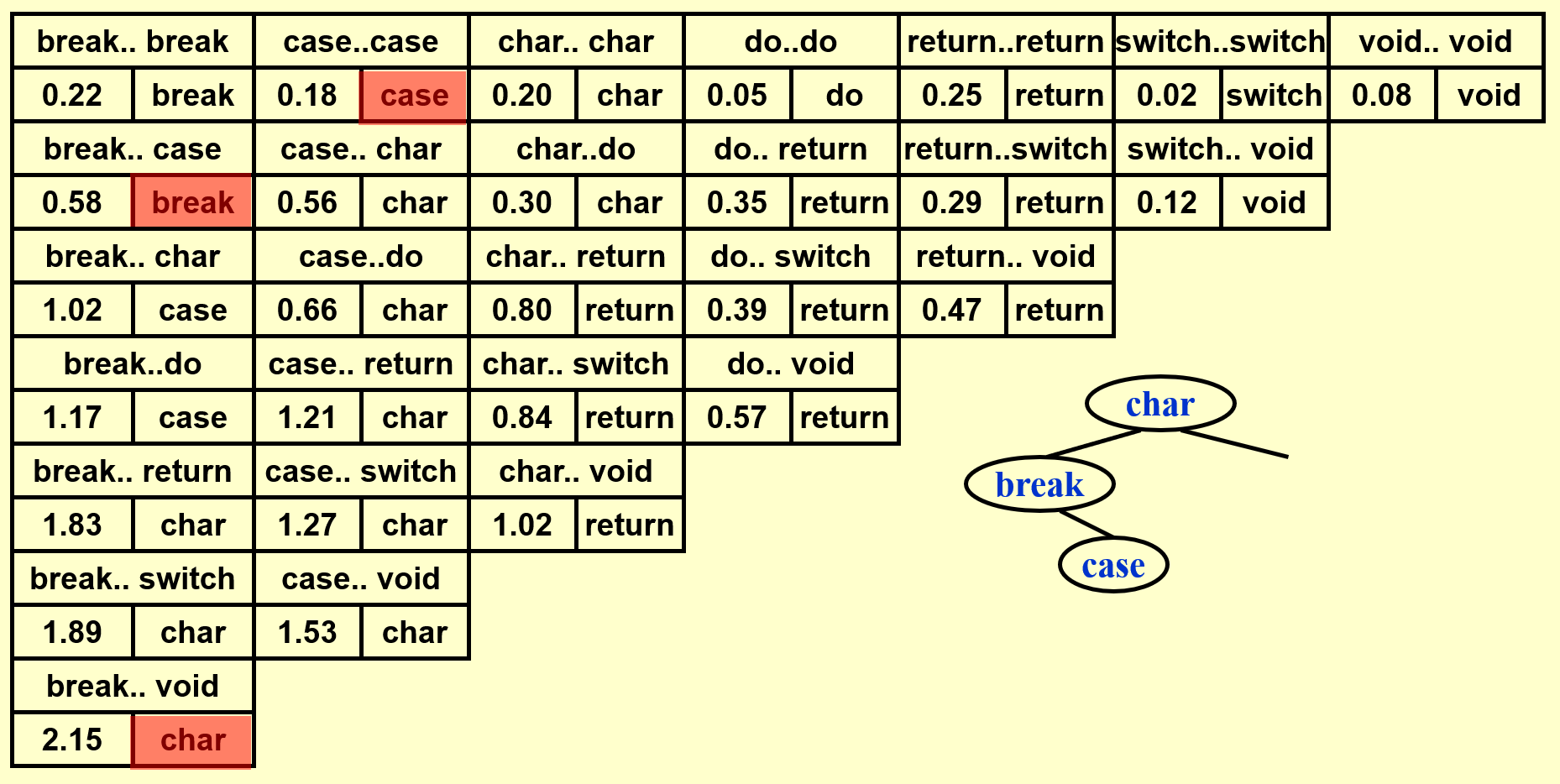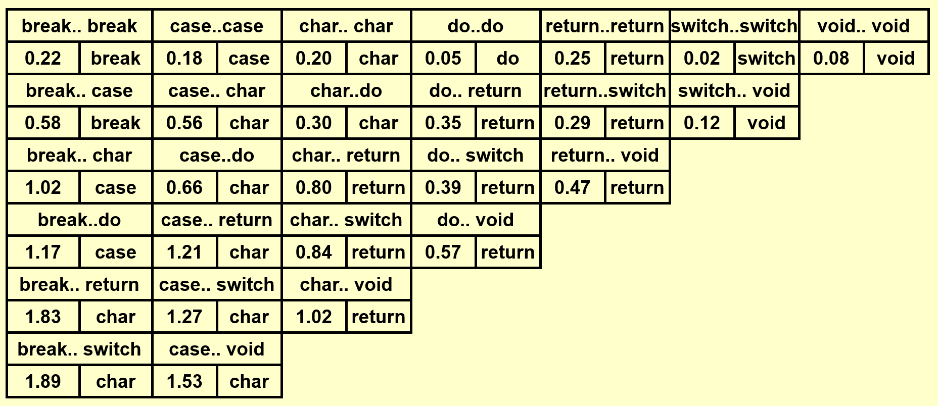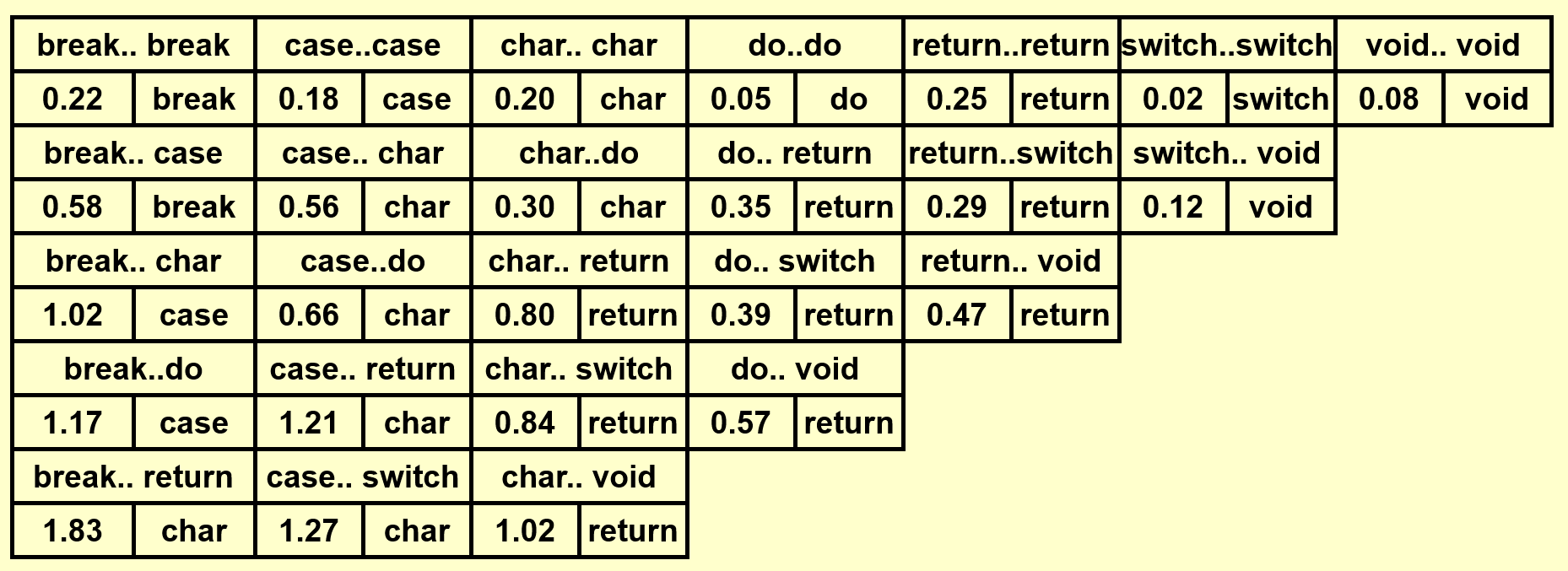 - 在计算过程中,我们保存了一张形如下三角矩阵的表: