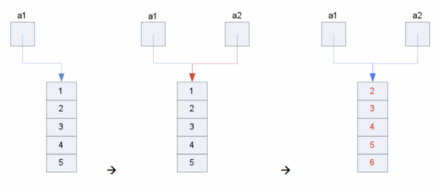 class Value { int i; } Value[] a = new Value[5]; for ( int i = 0; i < a.length; i++ ) a[i] = i; for ( var x: a ) x.i++; for ( var x: a ) System.out.println(x.i);