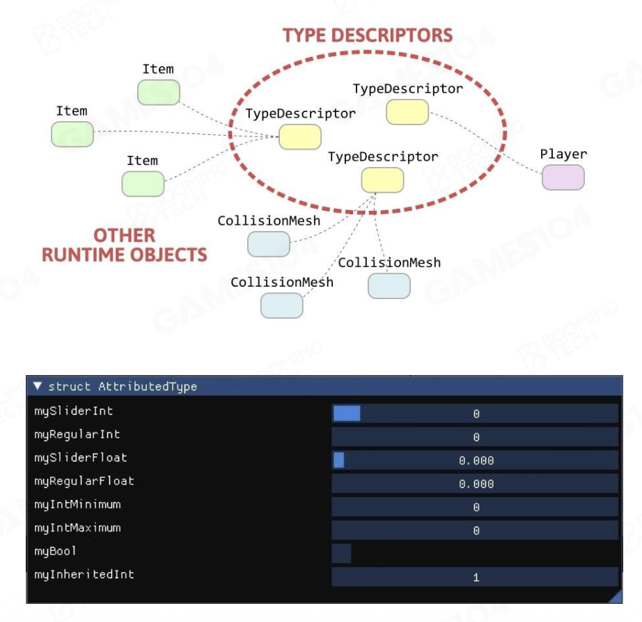 - C++ 反射 (reflection):在编辑器中暴露使用的变量和函数,也就是说游戏创作工具会对开发者提供的代码进行某种形式的反射(或类似机制