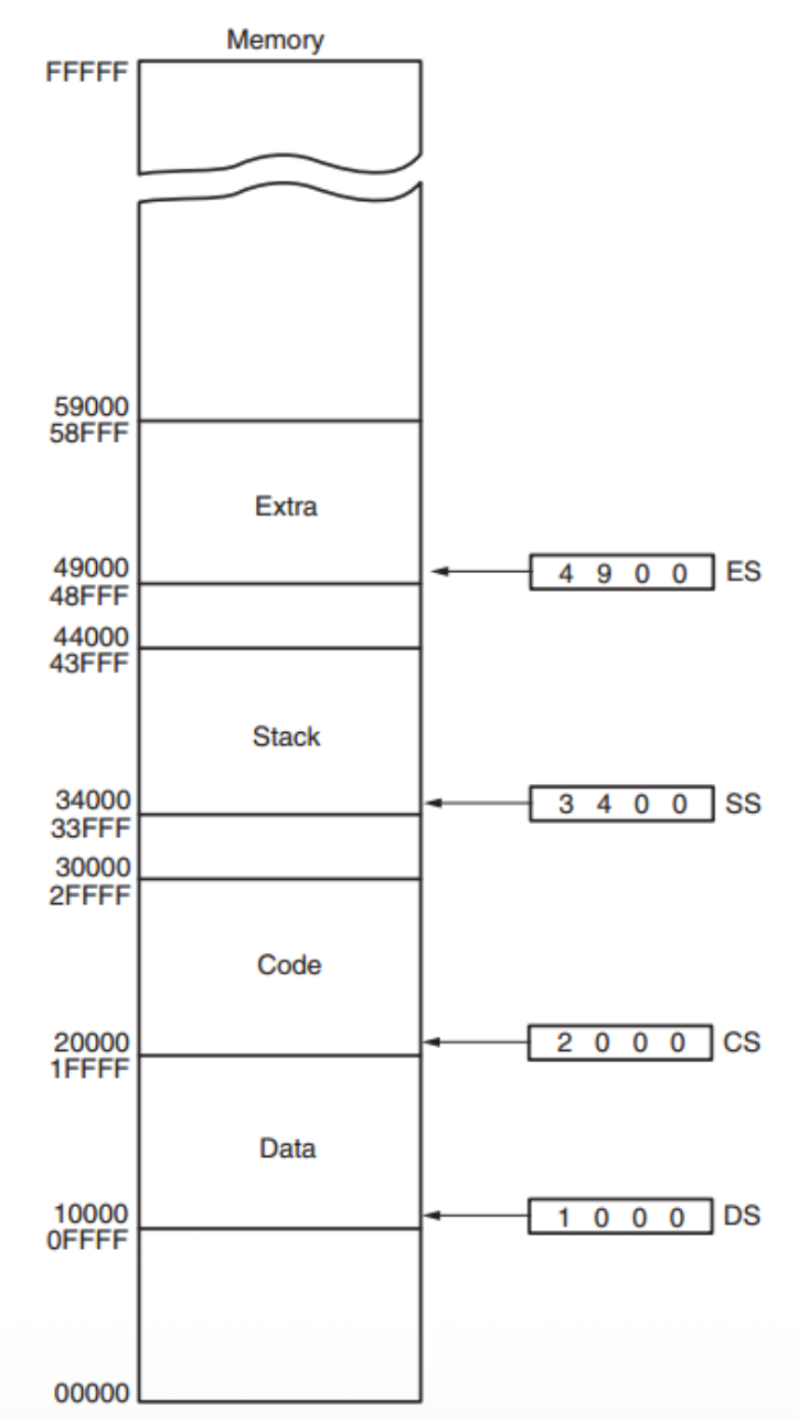 - ES(附加 (extra))是一个额外的数据段,某些指令用它来存放目标数据