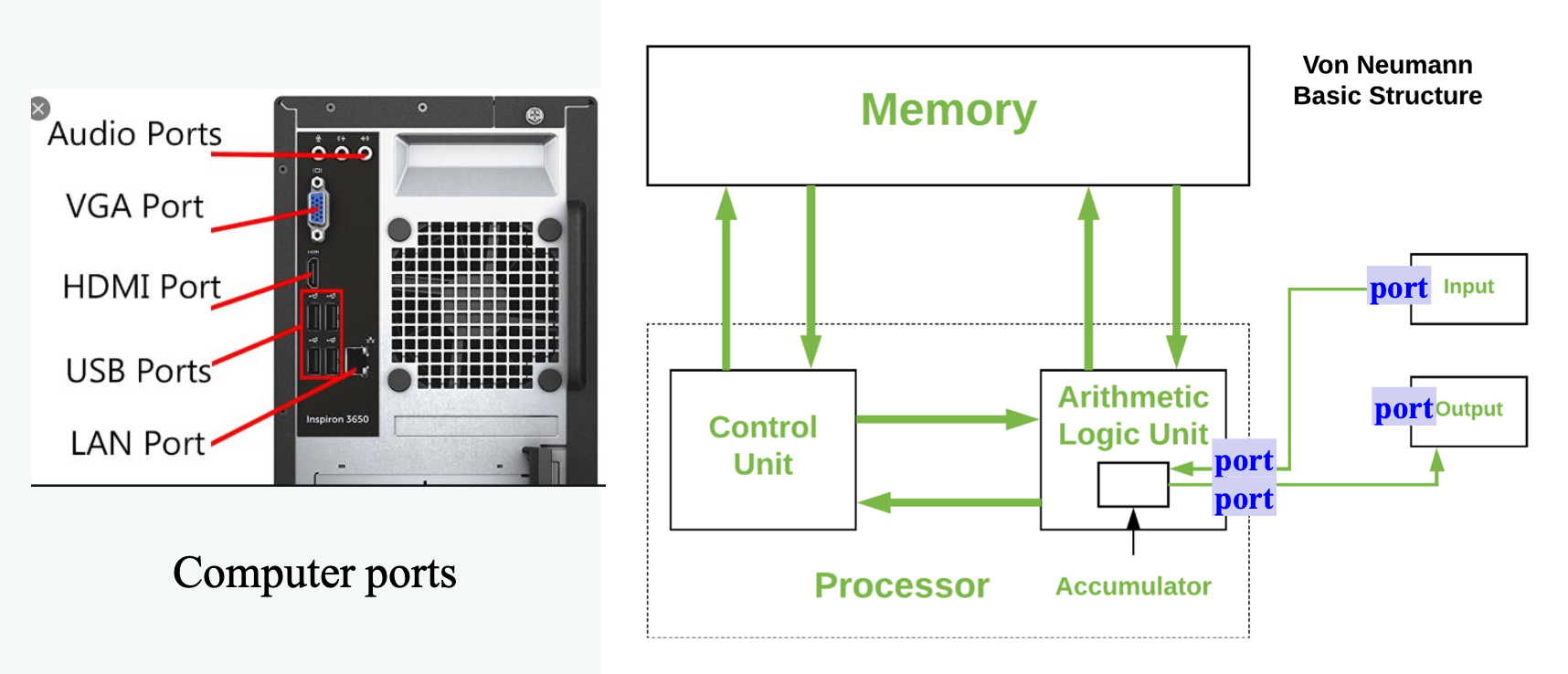 接口(interface) 或端口(port) 是连接计算机与外部设备的连接点,使得它们能够协同工作。