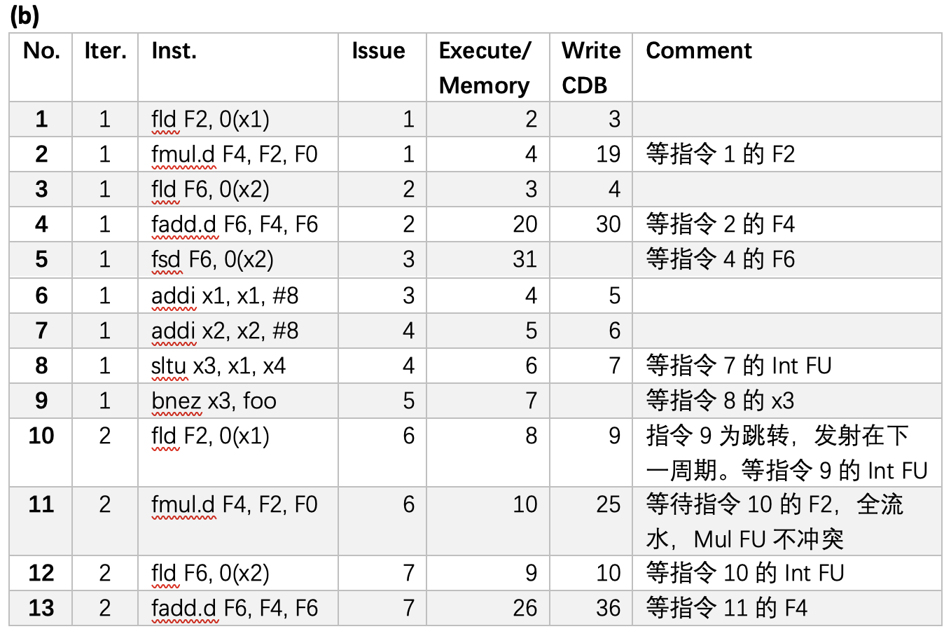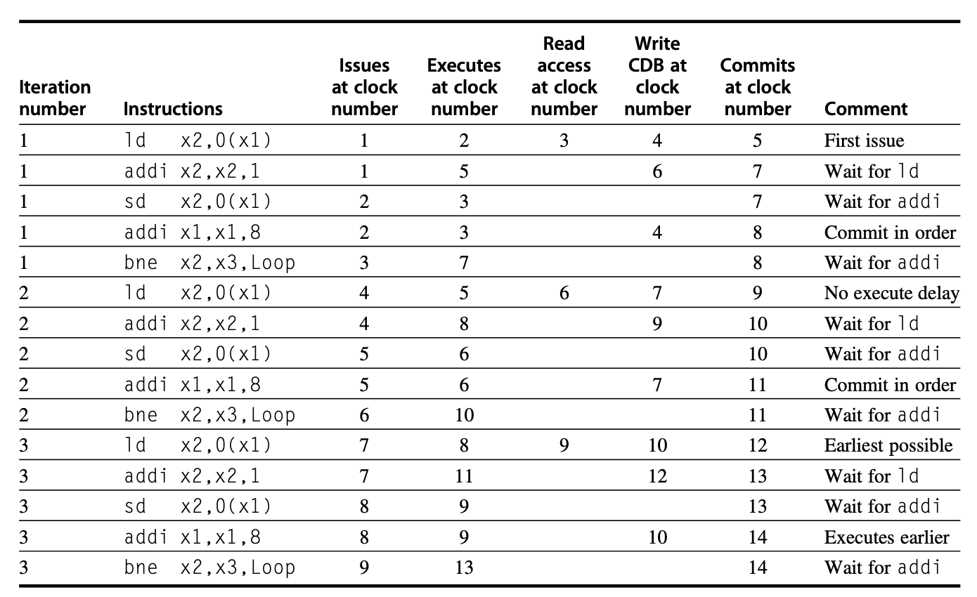 只有当采用了精确的分支预测和推测时,我们才会考虑增大发射率,否则的话会因为要解决分支问题而很难扩大发射率。而增大发射率会使发射阶段以及提交阶段(实际上是发射的对偶)更加复杂。下面展示了在一个时钟周期内发射 6 条指令的情况: