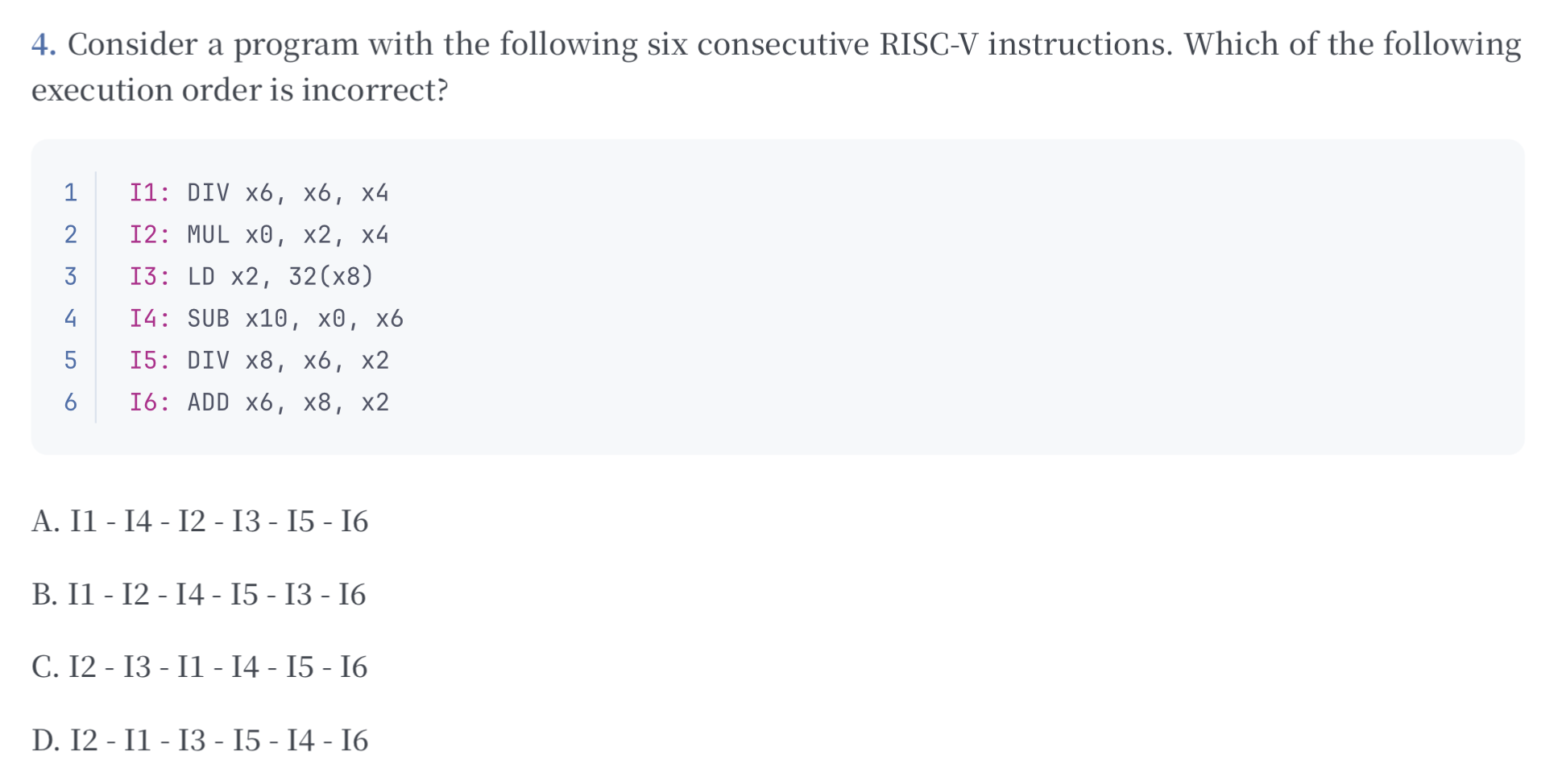 回顾一下冒险(hazard) 的概念:当指令间存在名称或数据依赖时,如果这样的指令足够接近,能够被重叠执行的话,那么就可能会改变访问和依赖相关的操作数的顺序,此时冒险就发生了。为了避免冒险的发生,在并行时必须保留那些会影响到程序执行结果的程序顺序(program order),即按源程序顺序来执行指令的顺序。
