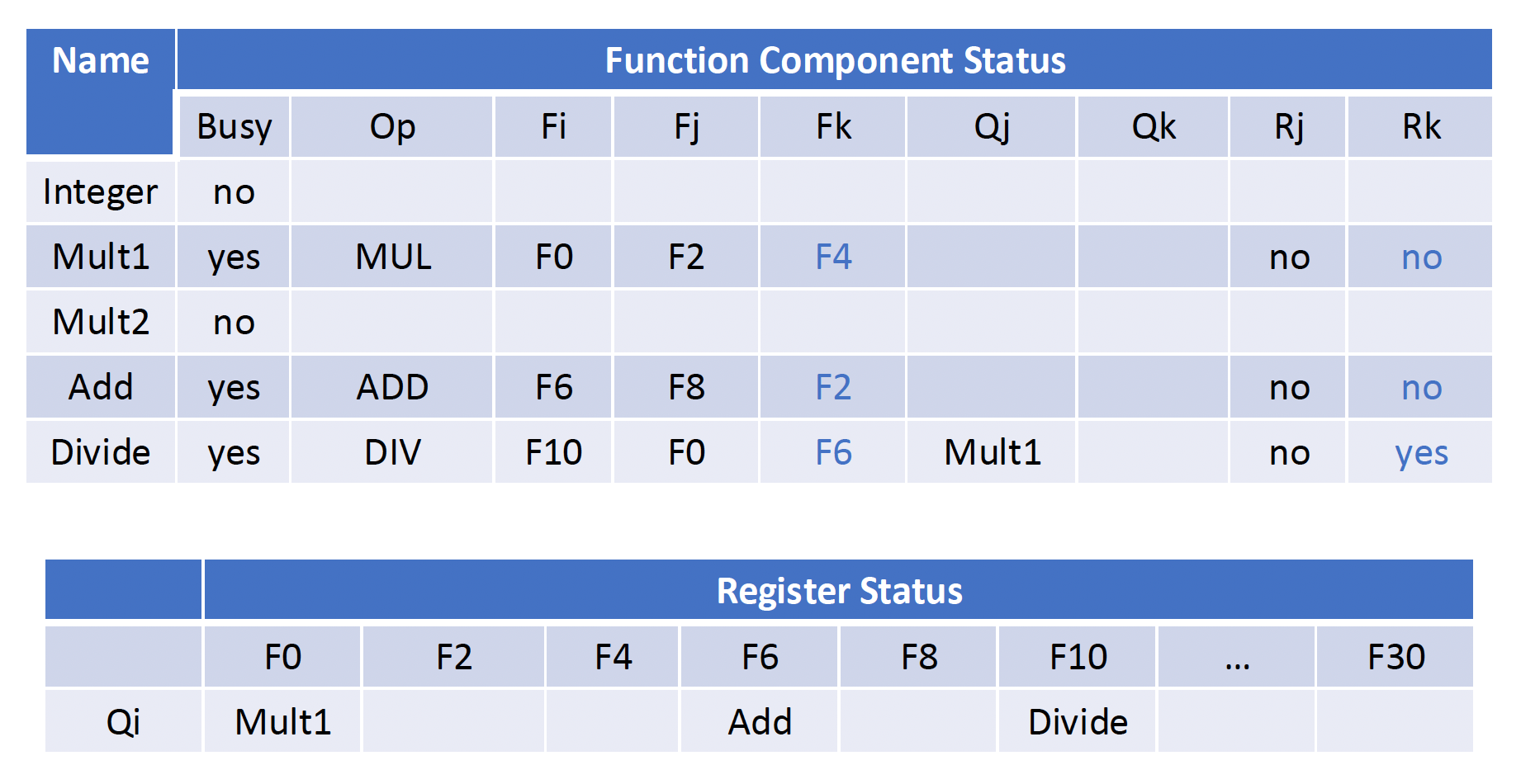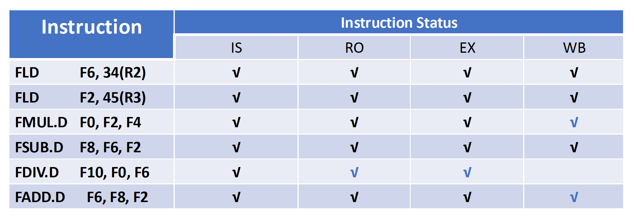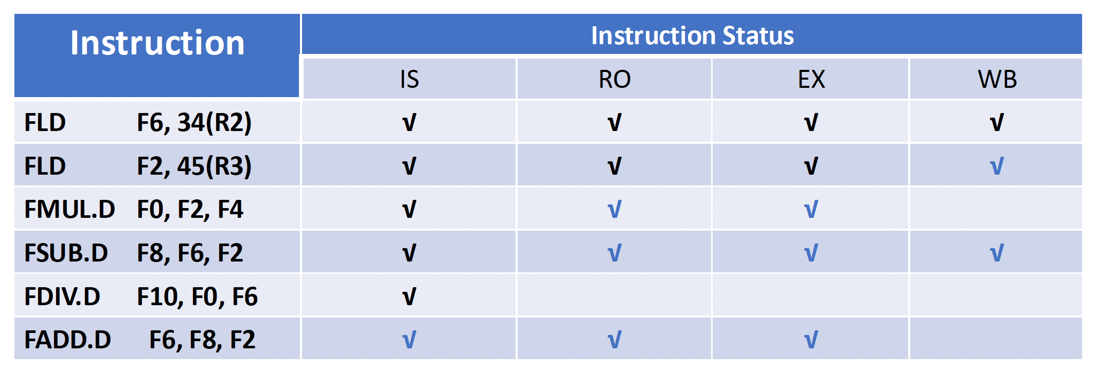 - 功能单元完全被完全流水线化或被复制,这样能确保每个时钟周期下任何类型的操作都能被发射,且没有结构冲突发生
