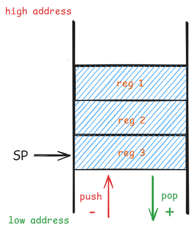 • 对寄存器进行初始化操作,并将栈指针指向第一个空闲的位置上