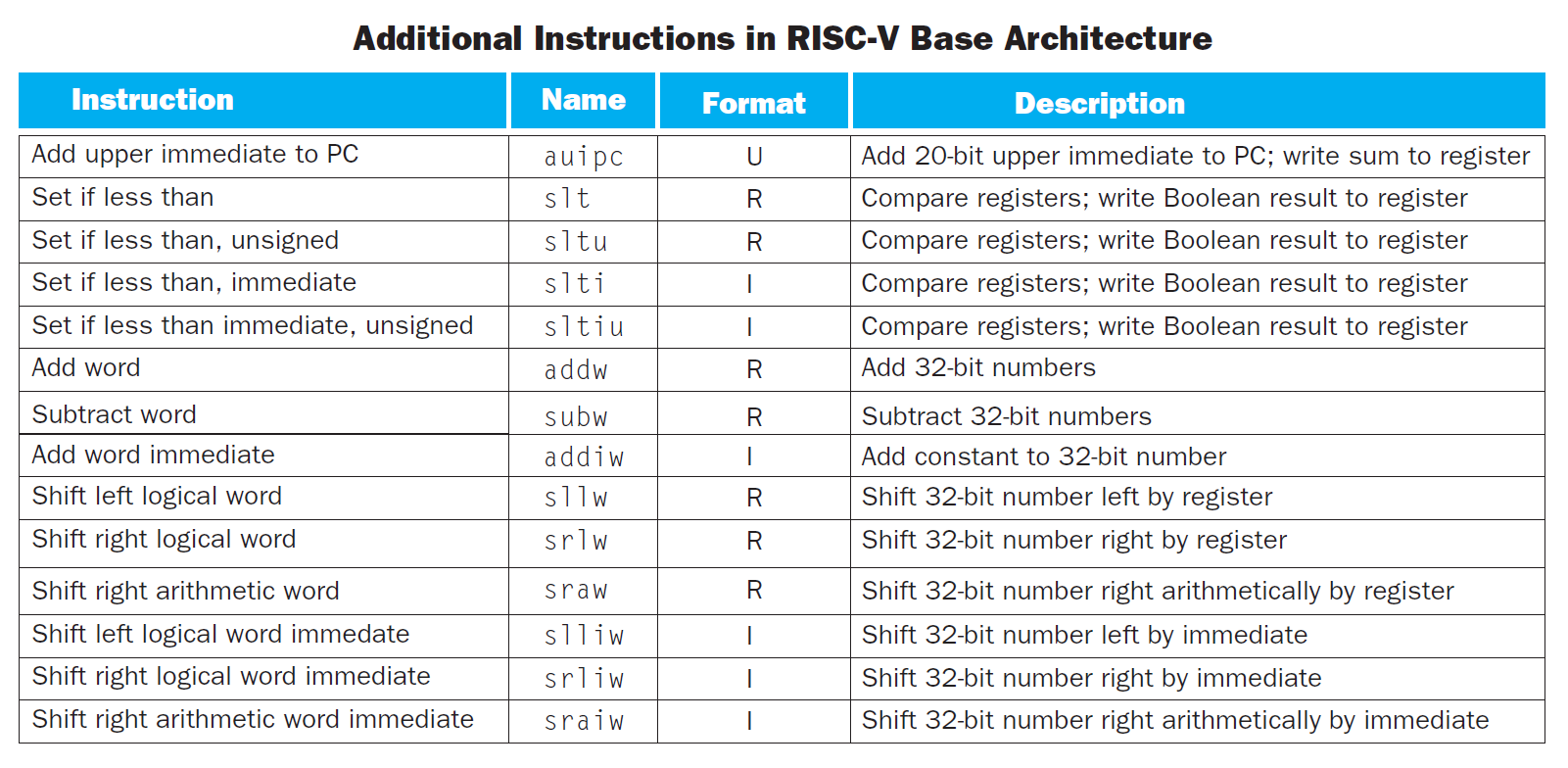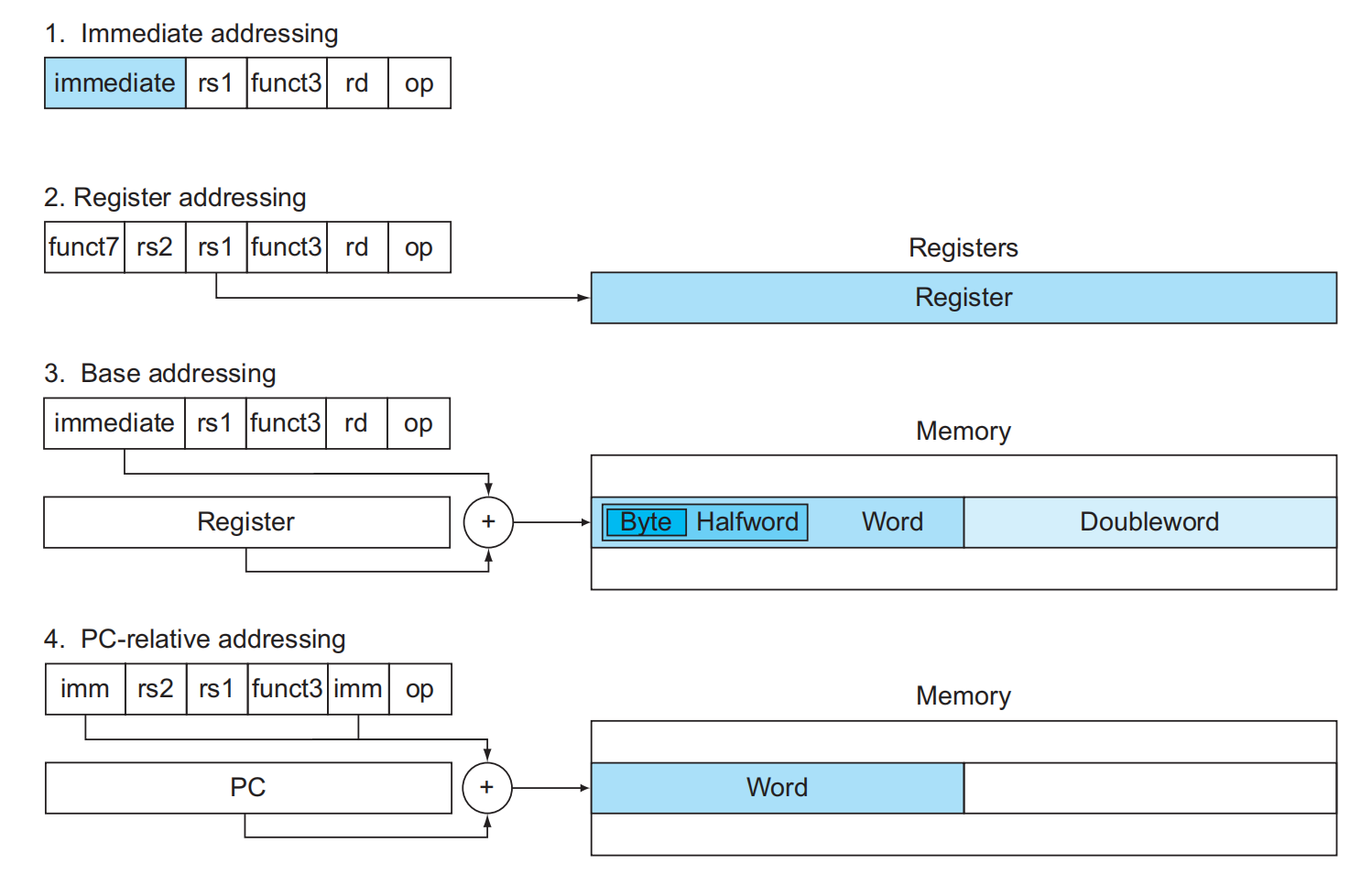• RISC-V 中,64bit 被称为双字(doubleword),32bit 被称为(word)