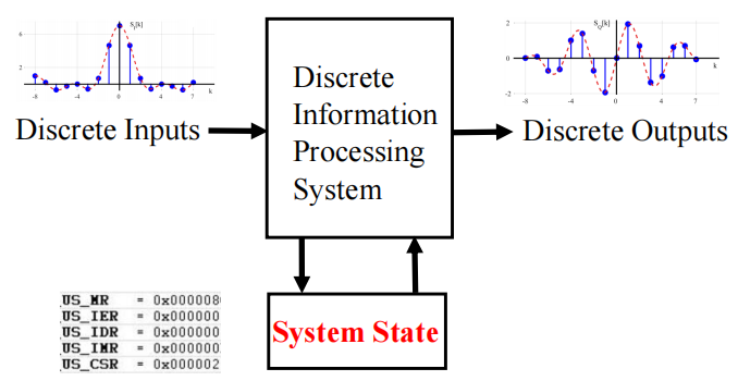 数字系统 (digital system):获得一组离散的信息输入和离散的内部信息输入 (系统状态 (system state)),产生一组离散的信息输出。