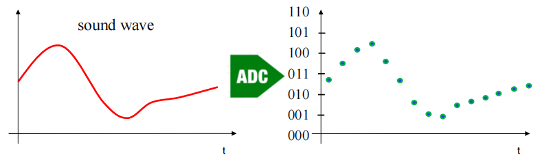 - 模拟信号 (analog signals):在值和时间上都是连续 (continuous) 的信号