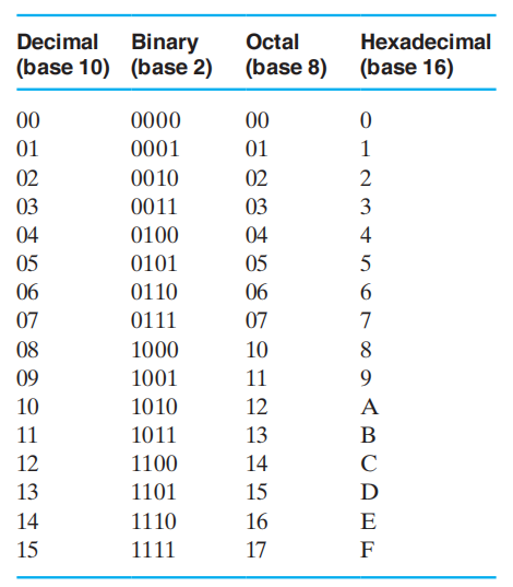 - 八进制 (Octal) \(\leftrightarrow\) 二进制:1 位八进制 = 3位二进制