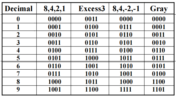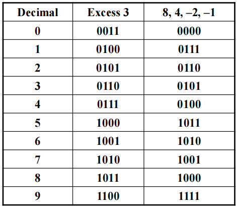 Excess 3 Code and 8, 4, -2, -1 Code⚓︎