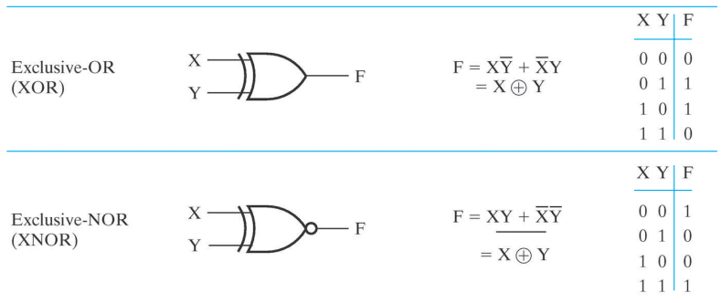XOR( 异或门 ) \(X \oplus Y = X \overline{Y} + \overline{X}Y\)