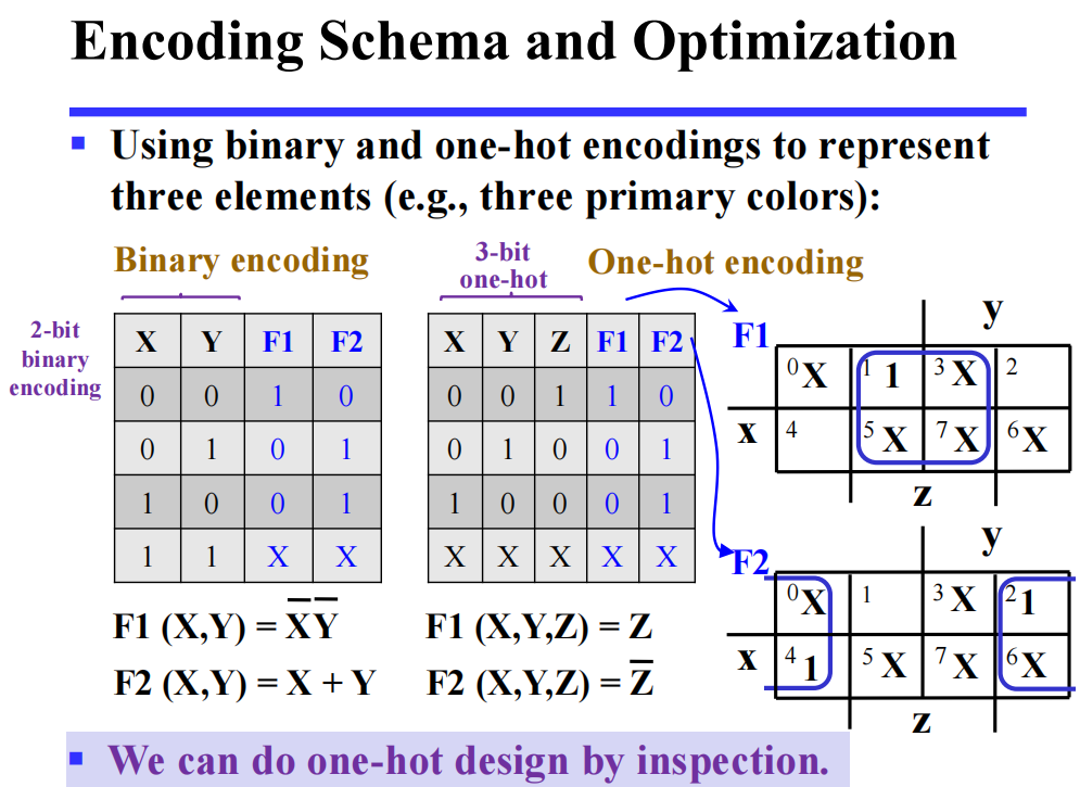 - 对于每个最小项,只有一种输入使得它的值为 1,其余输入对应的输出均为 0