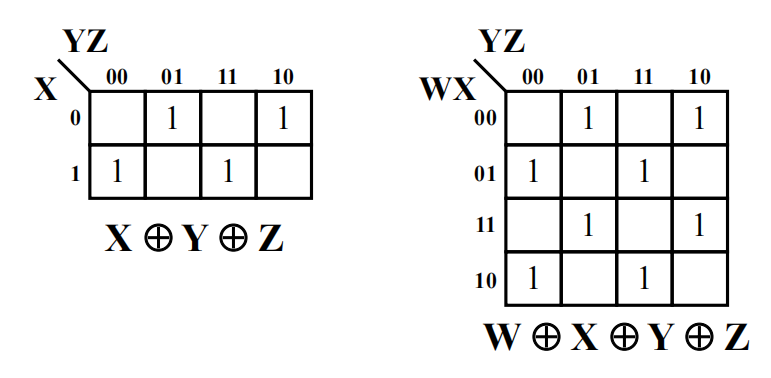 奇函数和偶函数在 K-map 上的布局呈棋盘布局