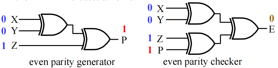 - 偶校验码:使用奇函数生成,偶函数校验